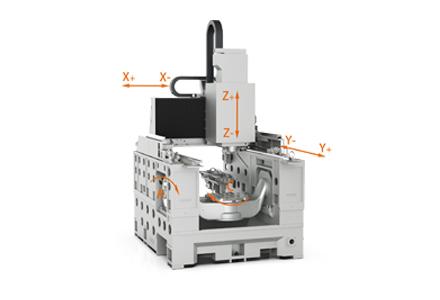 FMC-600V 五軸加工中心整體采用龍門式結構,雙立柱高架結構,Y軸采用雙驅結構,并配置AC軸搖籃式回轉工作臺,可一次裝夾完成銑、鉆、擴、鏜、攻、锪等多工序的高精、高效加工。